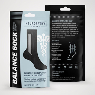 In his practice, Dr. Hames works with many patients who experience balance issues, and the usual remedy is through bracing or physical therapy. He wondered whether a completely unique sock could provide a simpler, more effective solution. After many months of design, development, and refinement, Dr. Hames tested his breakthrough invention with approximately 50 patients in clinical studies — and the results were astounding: Wearers experienced immediate, real-time balance improvement, while nearly 95% reported improved or complete relief from neuropathy symptoms.