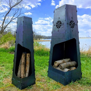 Are you Ready for Your Ultimate Outdoor Firepit? The Burning Tree Chiminea is a free-standing vertical fire pit designed and built by a family of First Responders! The flames are mesmerizing as they climb the Chiminea. Unique design channels smoke up and away from your family.