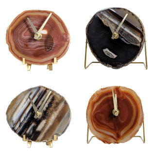 Handcrafted to the highest standards, Jessica's creations blend artisan materials from Brazil and components made by small US-based companies. Sustainably sourced agate slices are carefully placed on powder-coated metal bases, complemented with elegant brass and gold accents. Powering every timepiece is a Seiko mechanism, ensuring a silent operation and timeless design that will last for generations. Transform any nightstand or desk with a captivating statement piece beautifully made with love and care.