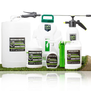 Welcome to the OxyTurf Family!! We are America's favorite Synthetic Turf Care Products company! How clean is your turf? It's not...Synthetic turf is a breeding ground for harmful and odor-causing contaminants. Like real grass, synthetic turf encounters dirt, sludge, spills, food, slobber, sweat, urine, animal droppings & other types of filth. From pet turf to athletic fields and playgrounds to gym turf, it all needs to be cleaned, decontaminated, and deodorized regularly. Harmful bacteria & germs that survive in turf can be transferred to kids, pets, or anyone else who comes in close contact with synthetic turf.