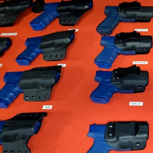 We offer standard full-size holsters for IWB and OWB carry, Fold-over holsters for IWB only (for limited models), and Dual Magazine Carriers for most models. All holsters have an adjustment for retention and cant as well. We extend a lifetime warranty on all our Kydex products, including the parts and belt clips.